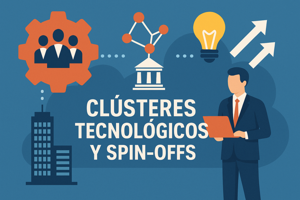 Los clústeres tecnológicos y las spin-offs se retroalimentan en un mismo ecosistema. Los primeros proporcionan el entorno estructural, las redes y las infraestructuras necesarias para el nacimiento y crecimiento de nuevas empresas, mientras que las segundas aportan dinamismo, transferencia de conocimiento y renovación tecnológica dentro del clúster.